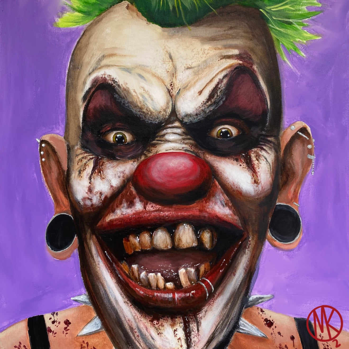 Step into the rebellious world of "Billy Bananas," an audacious character meticulously crafted by the imaginative hands of MKO from Monsters and Monsteras. As a standout piece in the Portraits of Misfits and Miscreants series, this 12"x12" art print captures the essence of defiance and mischief, showcasing a clown with piercings, a mischievous smile, and a green mohawk against a vibrant purple background.
